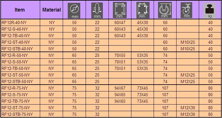 Light duty Nylon caster with ball bearing ![]() Housing : Zinc plated / Black Lacquer. 1. Why choose us? and what is our advantage? We just for you! a. Factory price /Competitive price b. High quality with certification c. OEM & ODM are valuable. d. Fast Delivery e. Stronger sales team and after sales service. 2. Sample: Free sample. 3.Delivery: about 25-45 days.(depend on quantity) 4.Minium: USD 4,500. (mixed items applicable on regular collections) 5. Price Term: FOB/CNF/CIF 6. Packing: Standard export carton. 7.Shipping: By sea/by air. 8. Payment Method: T/T. 30% deposit,70% after fax (email ) Bill of lading. |